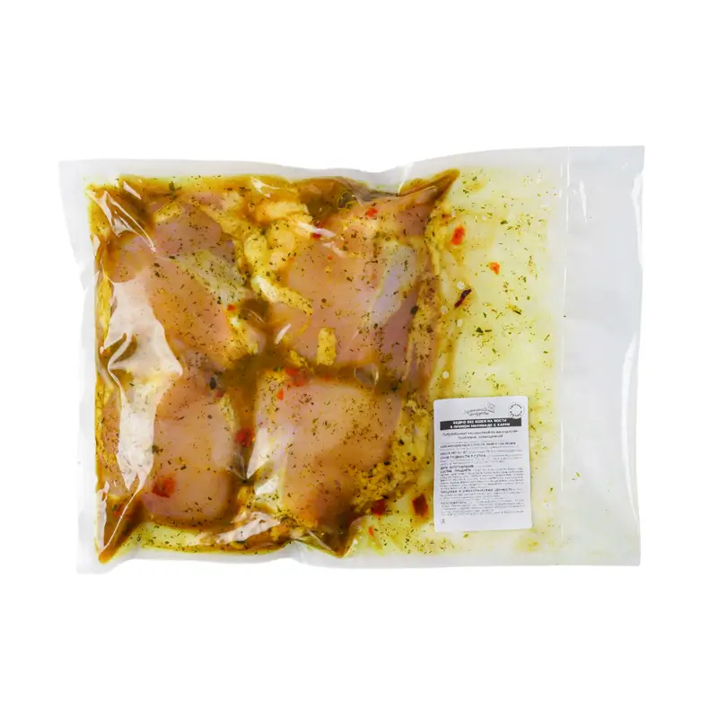 Бедро без кожи на кости в пряном маринаде с карри вкусное,но очень соленое...