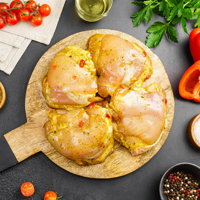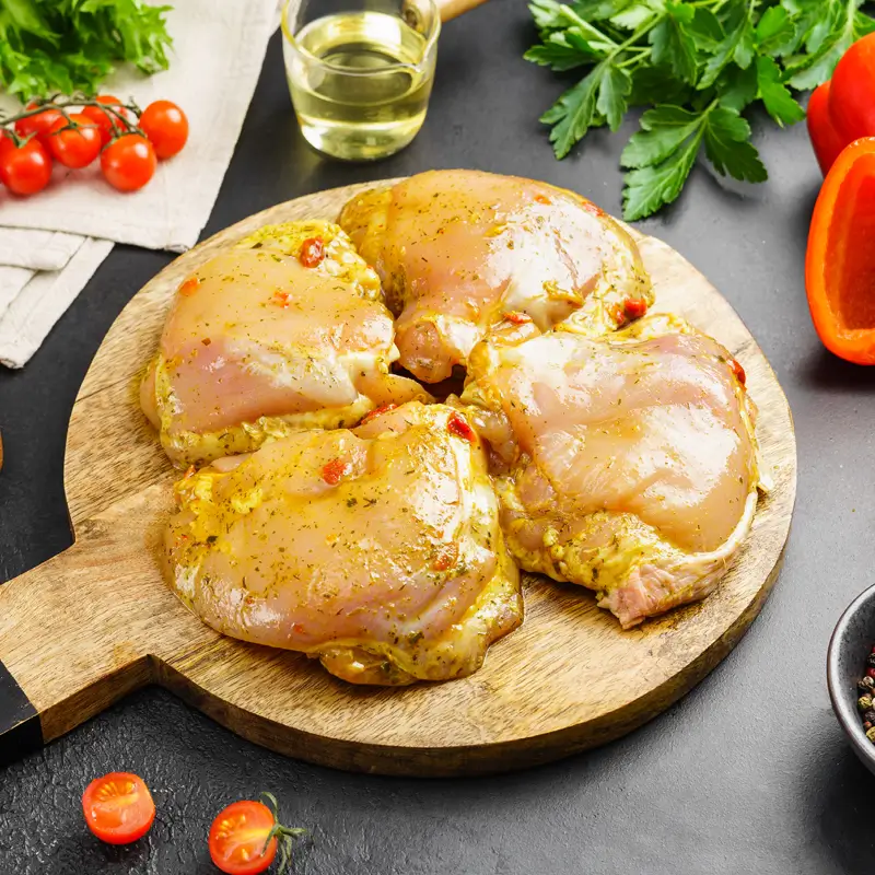 Бедро без кожи на кости в пряном маринаде с карри